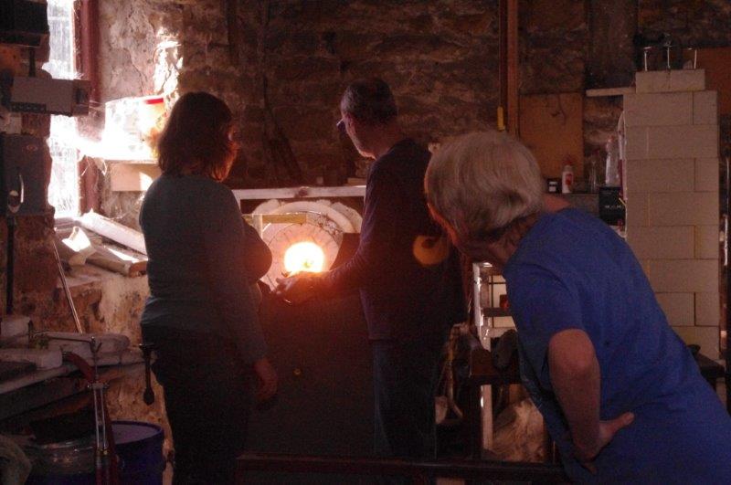 Tim has that experience. In the far-off days when he learned to blow glass, he recalls, a boy came round the works dispensing beer to the parched workers. “It was a special weak brew,” he comments, “For steel and glass workers.”